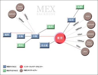インターネット接続、データセンター事業を拡大中のメディアエクスチェンジ株式会社(略称:MEX、本社:東京都豊島区、社長:吉村 伸)は、ブロードバンド時代を迎え、高速大容量のデータ伝送に対応していくため、基幹回線(バックボーン)の大幅増強と冗長性の強化を、先駆的に推進していきます。
